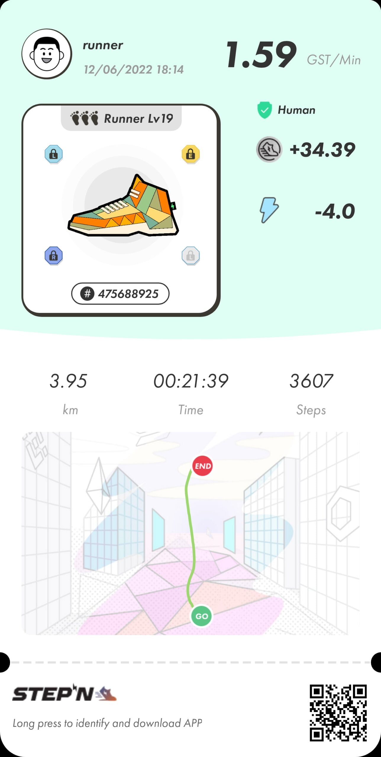 RUN 走って稼ぐSTEPN(ステップン)走って稼ぐ 57日目 22年6月12日(日)