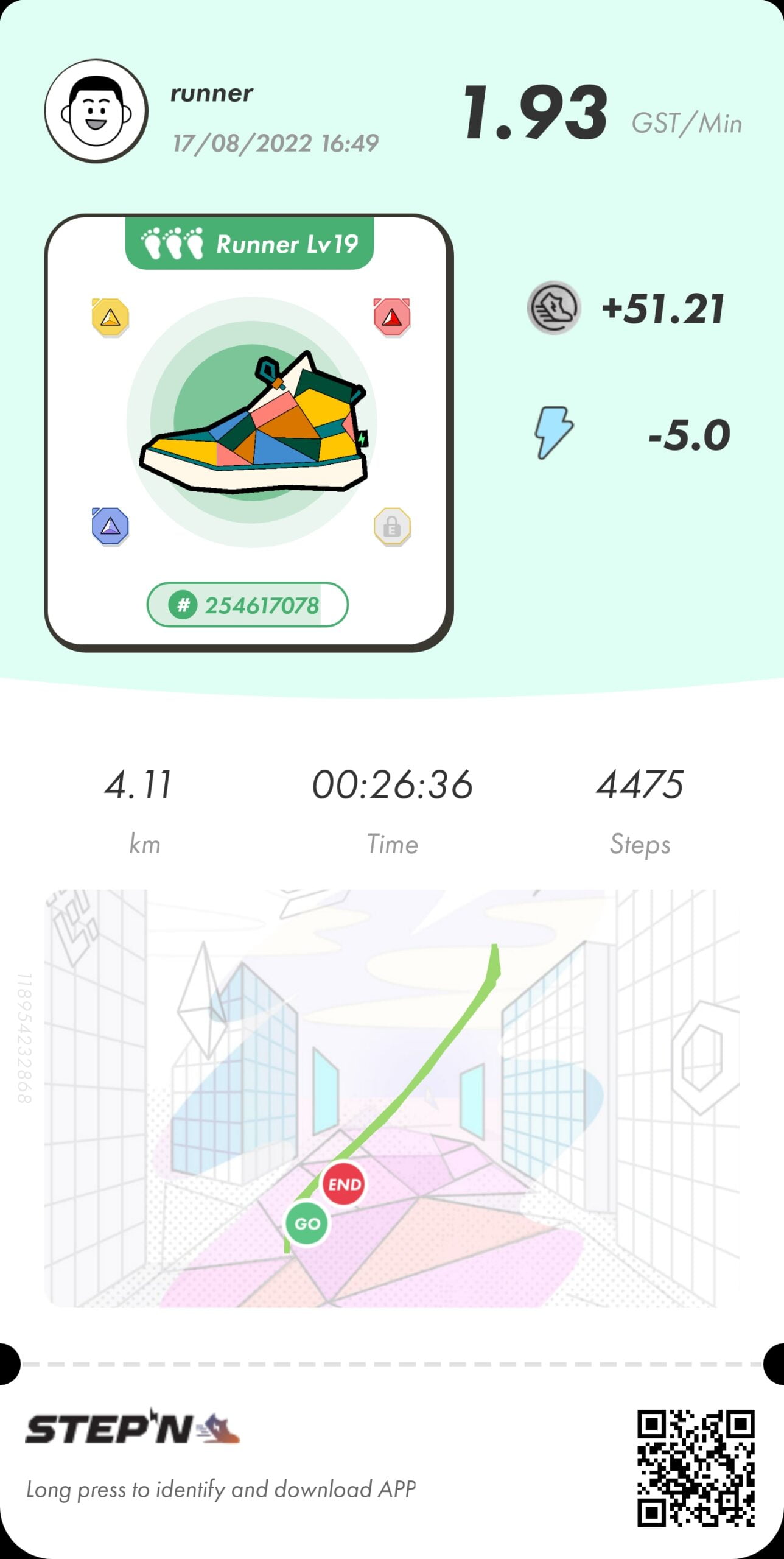 STEPN(ステップン)走って稼ぐ 123日目 22年8月17日(水)