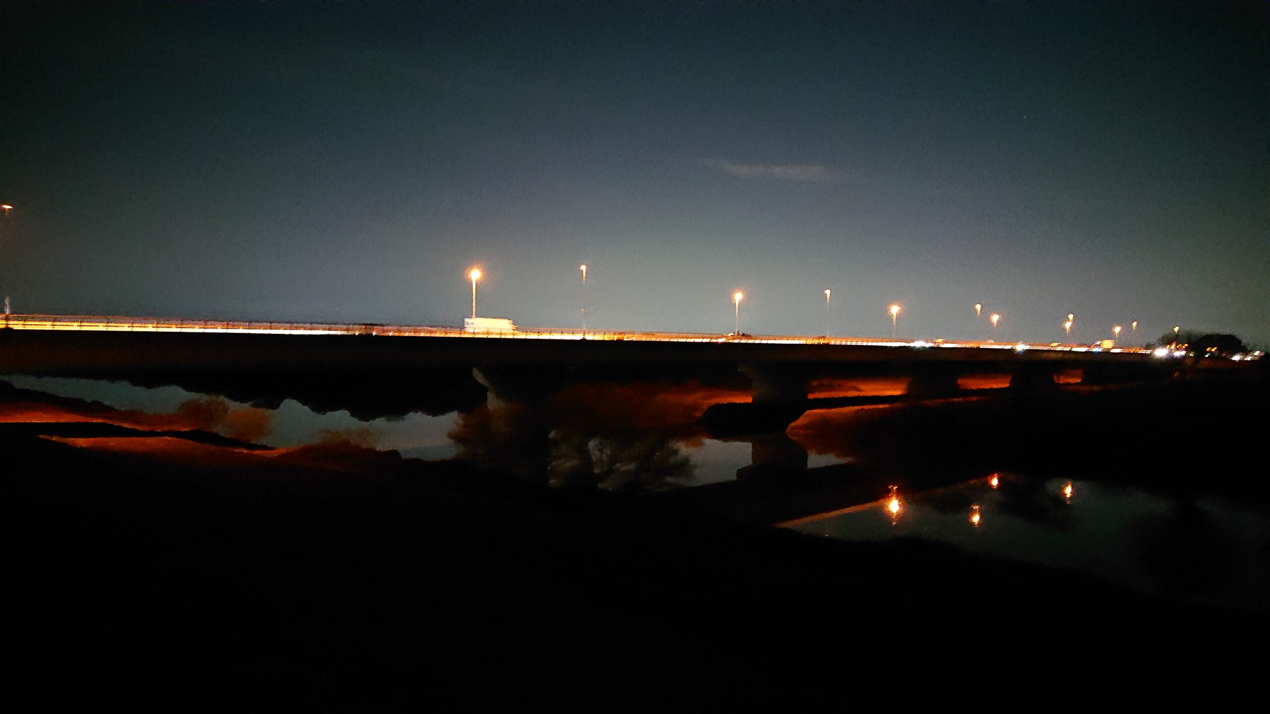 堤防は足元も見えないような闇なのでライトを持って走りました。