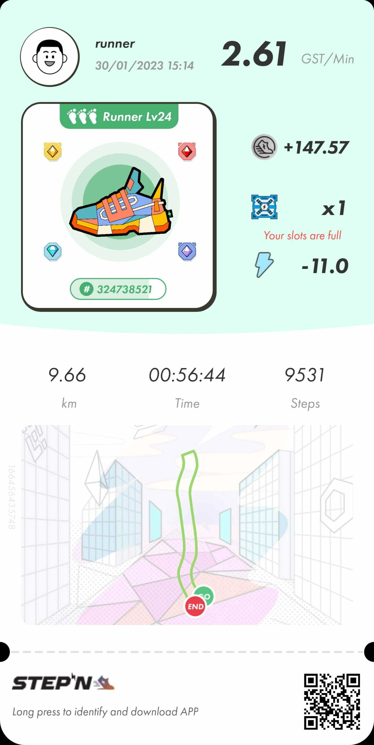 翌日の界王拳に備えて少なめのランです。走り終わったつもりが1分足りなくて、たとえ1分でも溢れさせたくないので、追加で1分だけ走りました。今まで1度も溢れさせてないのでもう意地です。