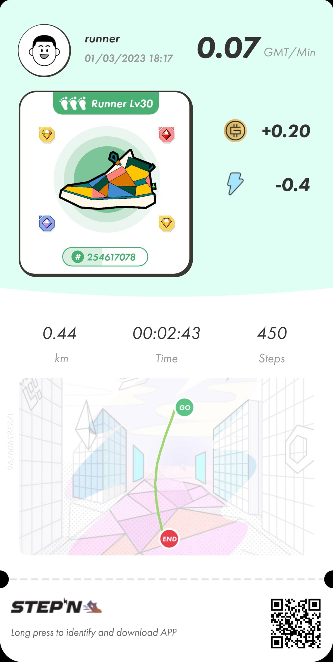 また途中で計測が終了していました。最近多いのですが、スマホの性能が原因な気がします。エナを使いきる前にGST獲得上限に達したので、2分だけですが初めてGMT掘ってみました。2分で0.2GMT、約10円です。GSTなら2分で約24円なので、獲得上限を超えない限りやる意味はないですね。当分機会は無さそうです。