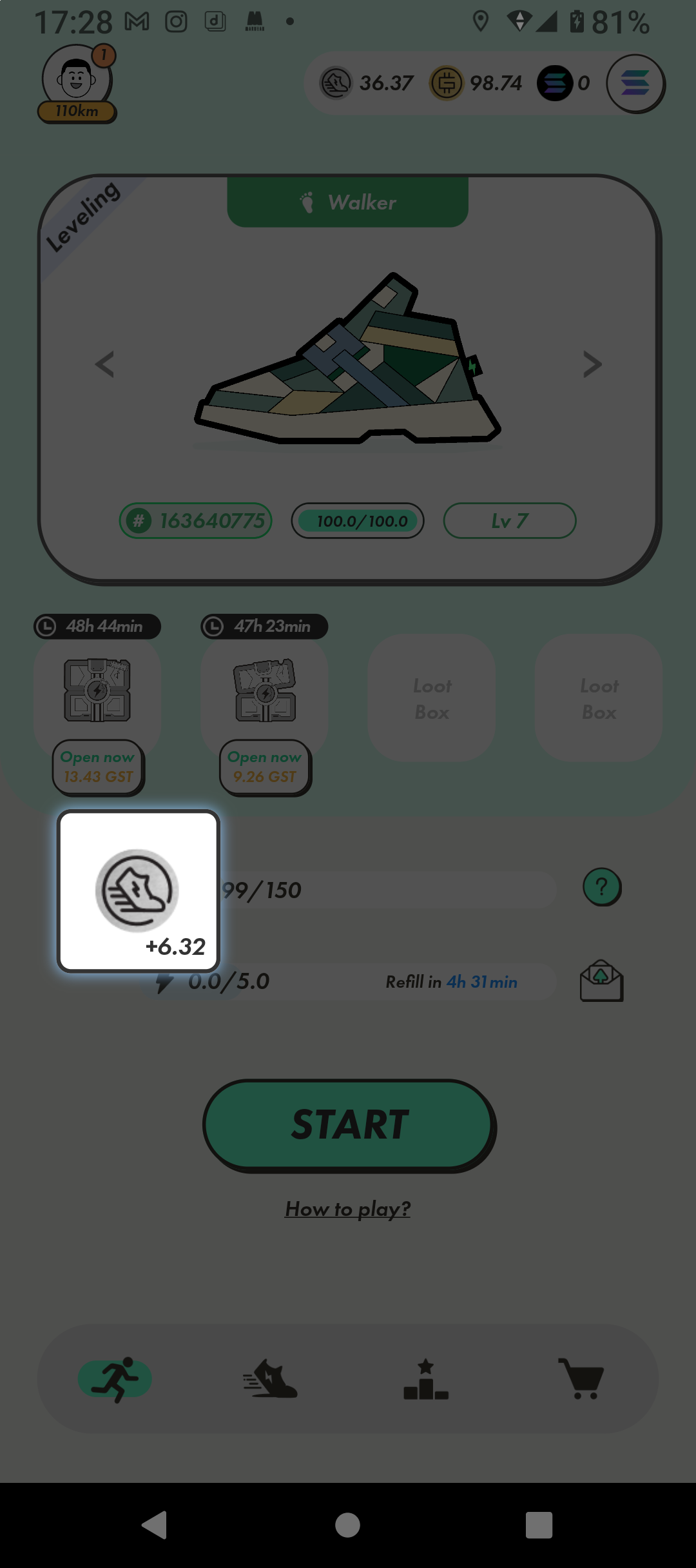 初ミステリーボックスからは6.32GST出てきました