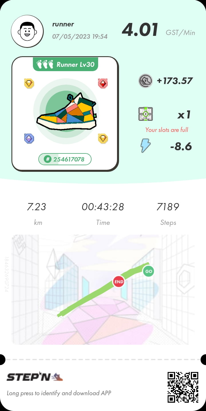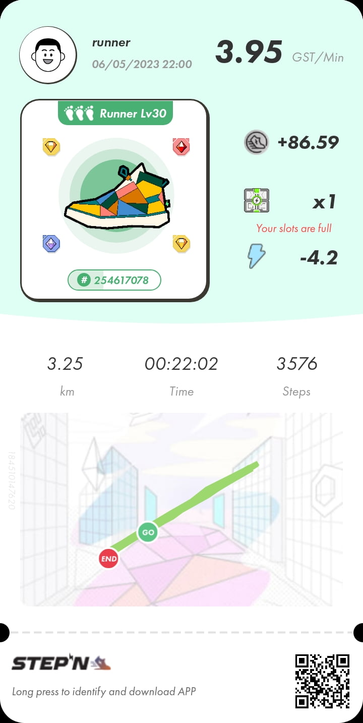 終日雨予報。前日分を走った後、STEPNの日付が変わるのを待ってそのまま1/4日分消化。