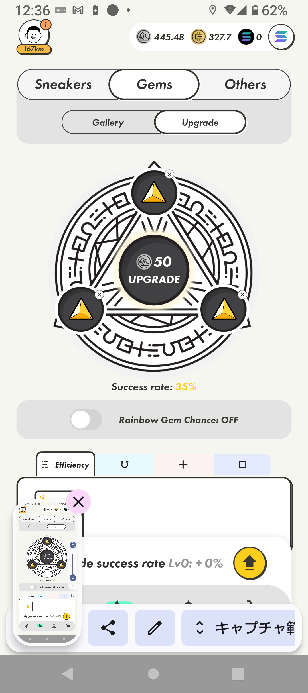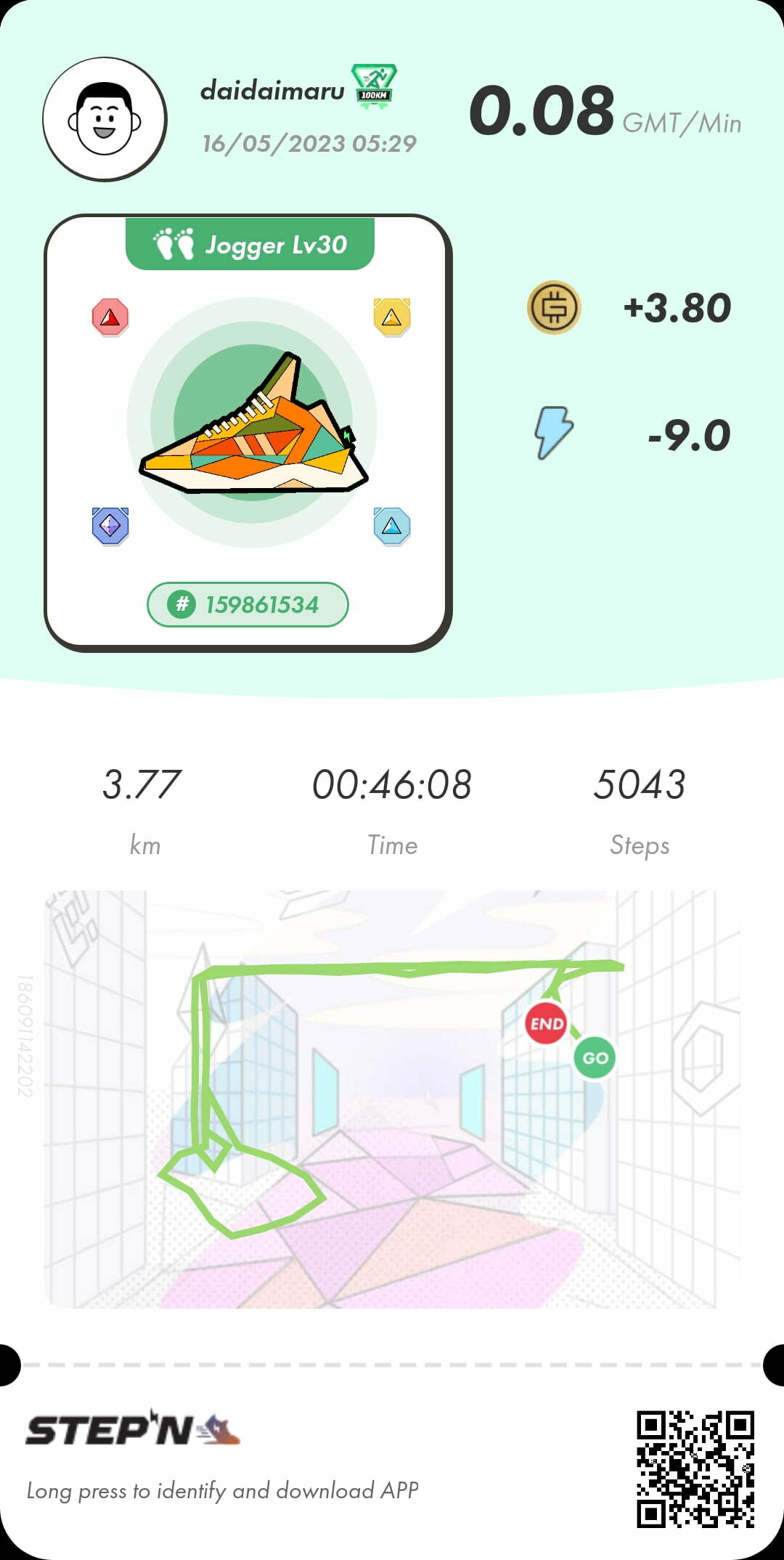 日常にちょこっとだけカラダにいいことをchocozap ステップン(STEPN)歩いて稼ぐ GMTアーンでエーン GMTearn GMTアーン2023.05.162023.05.18GMTearn GMTアーンMB(MysteryBox) ミステリーボックスWALK 歩いて稼ぐパリチャレ バリチャレ [広告] 当サイトはアフィリエイト広告を利用しています。ステップン(STEPN)歩いて稼ぐ GMTアーンでエーン5月16日GMTアーンをやってみましたが 思ったよりも稼げませんでした R値がもっと大きくないとだめだと気付きました 多分1000とかやっぱりGSTアーンを主軸にして GEM稼いで GEMレベル上げしていきますLv.5のMB(MysteryBox)からEが出たのでバリチャレ 見事成功 歩き担当本日の稼ぎ +3.8GMT約61.18GST靴修繕費 -12GSTレベルアップ費 -GSTMB(MysteryBox)開封費 -100GSTソケット解除 なしバリチャレ -50GST収支 -100.82GST(-41.78円)投稿時または更新時のCoinMarketCapの価格を参照していますホームSTEPN(ステップン) 攻略ヒントGMTearn GMTアーン
