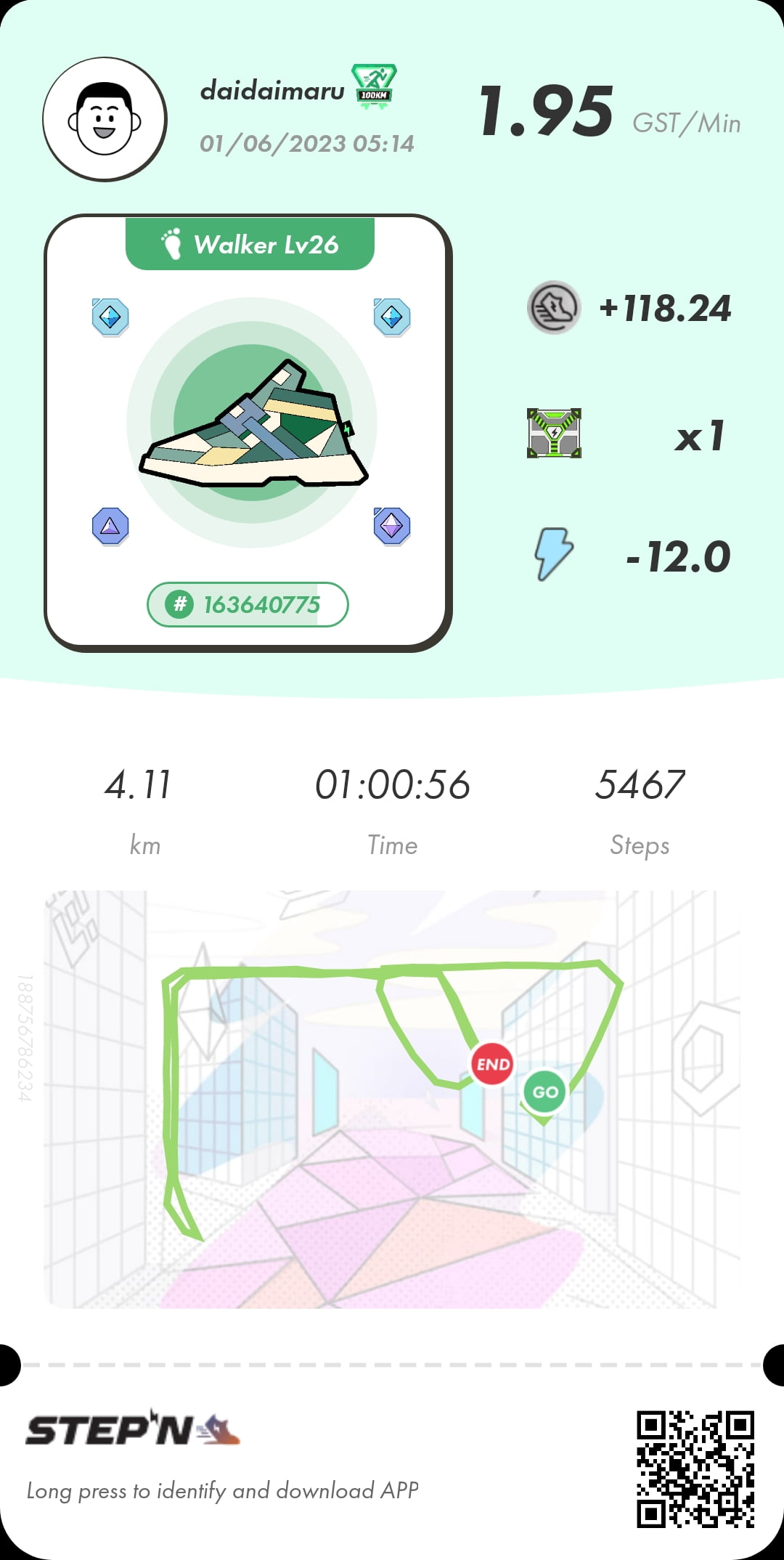 ステップン(STEPN)歩いて稼ぐ GEMのバリチャレなかなかの成功率だと思う 6月1日