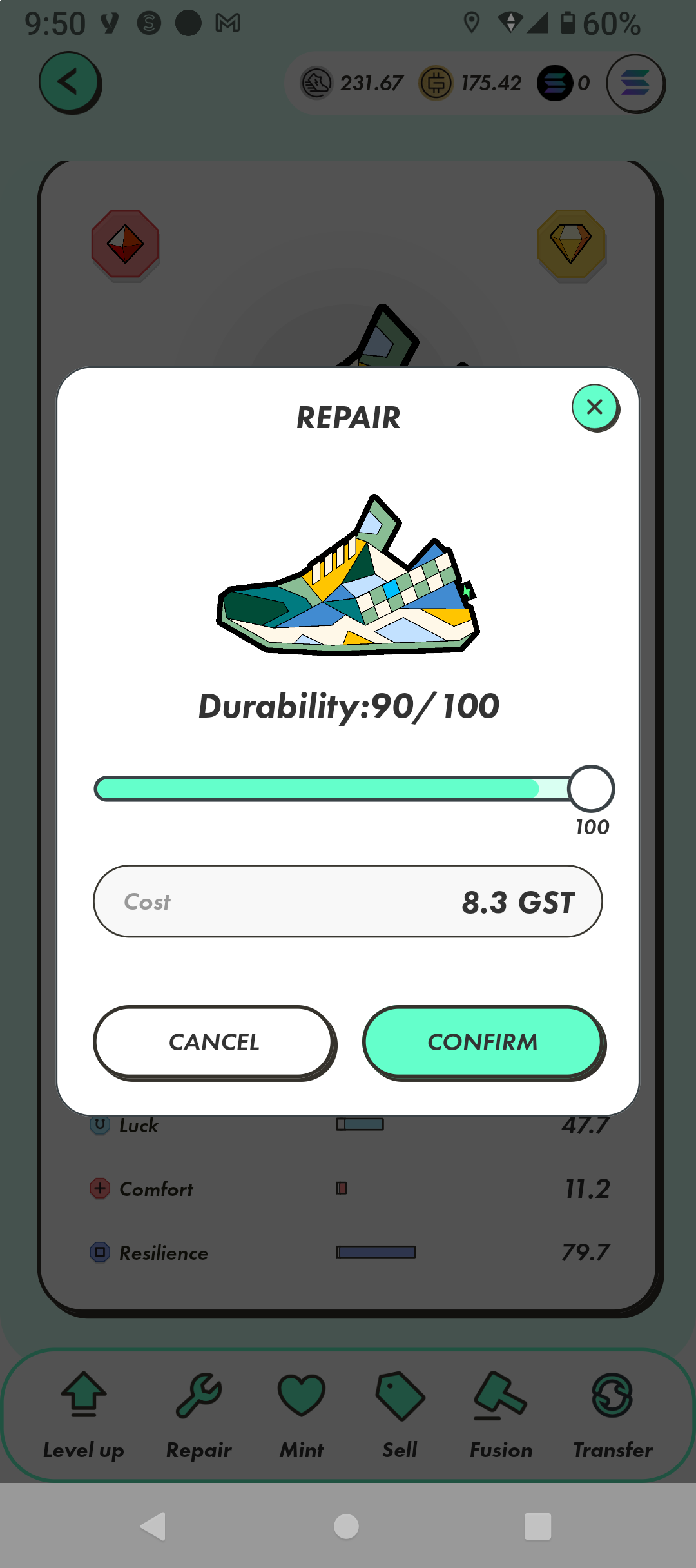 ステップン(STEPN)歩いたりちょこっと走って稼ぐ 200mくらい走れるようになりました