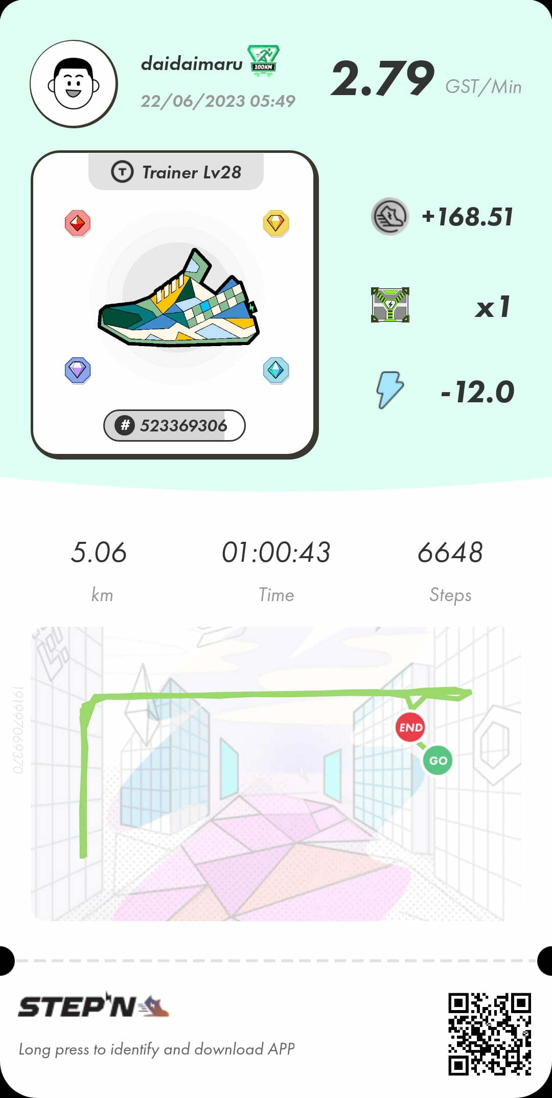 ステップン(STEPN)歩いて稼ぐ スニーカーミント 6月22日
