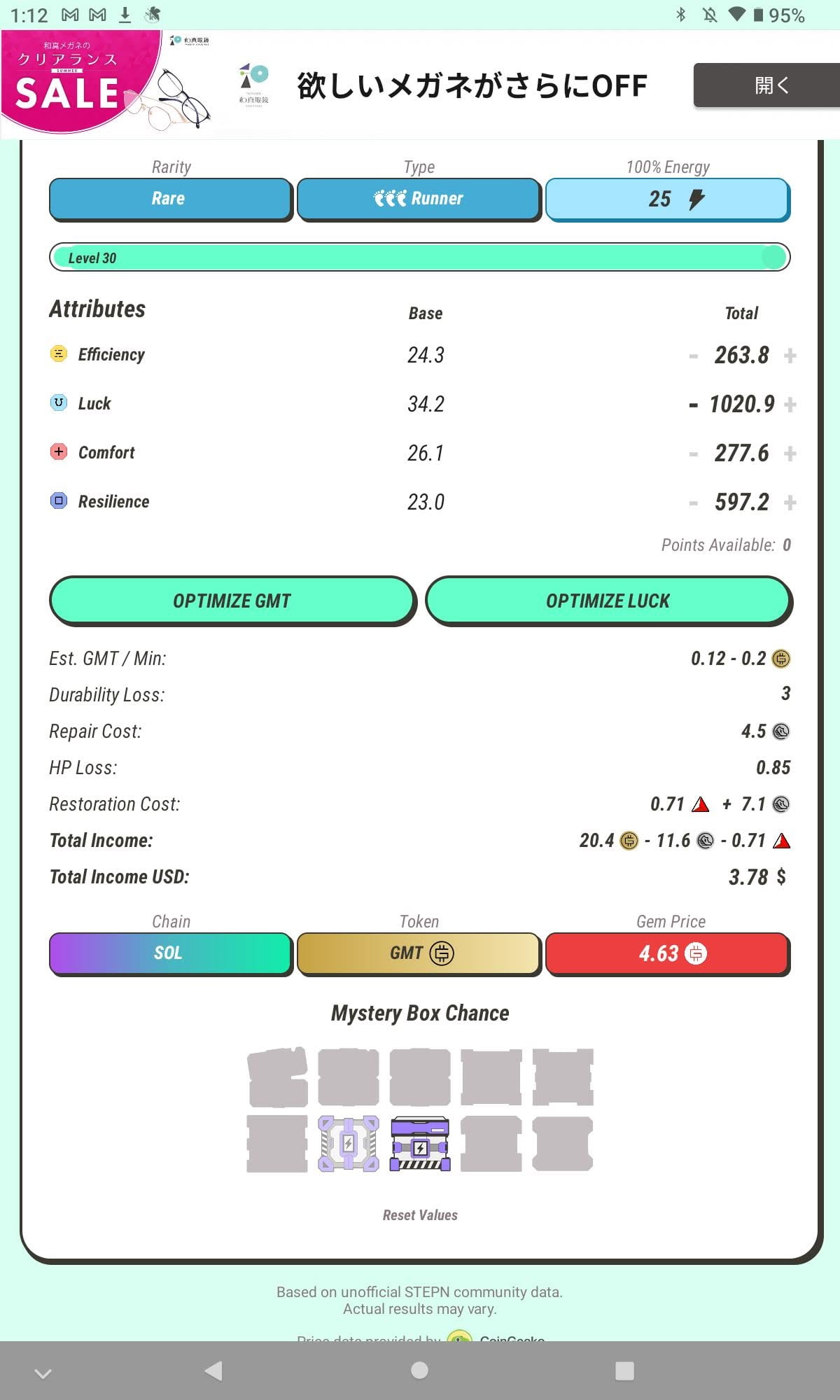 STEPN(ステップン)走って稼ぐ 460日目 460日目 23年7月20日(木)