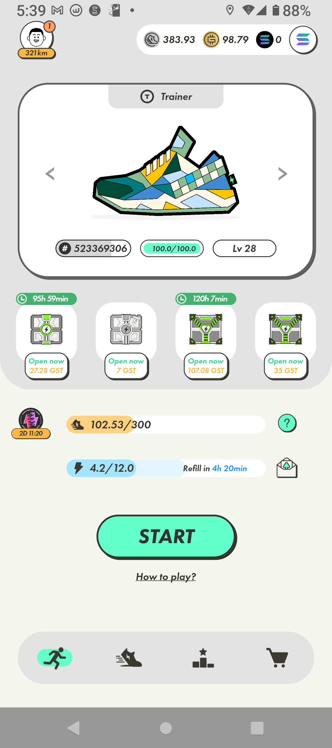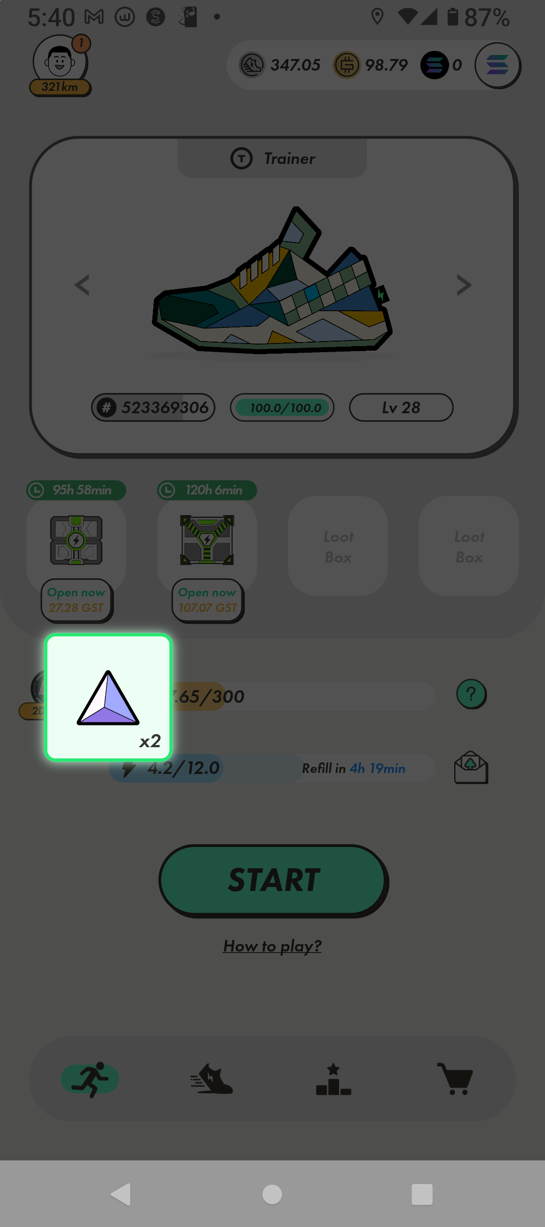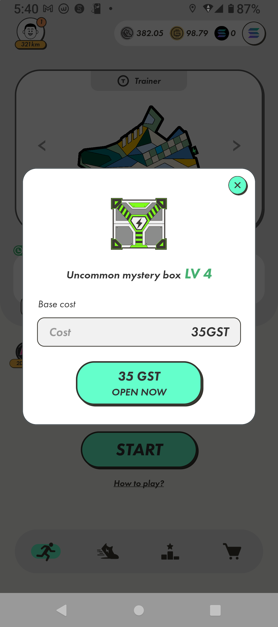 ステップン(STEPN)歩いて稼ぐ ミステリーボックスあけるも「だめだこりゃ」